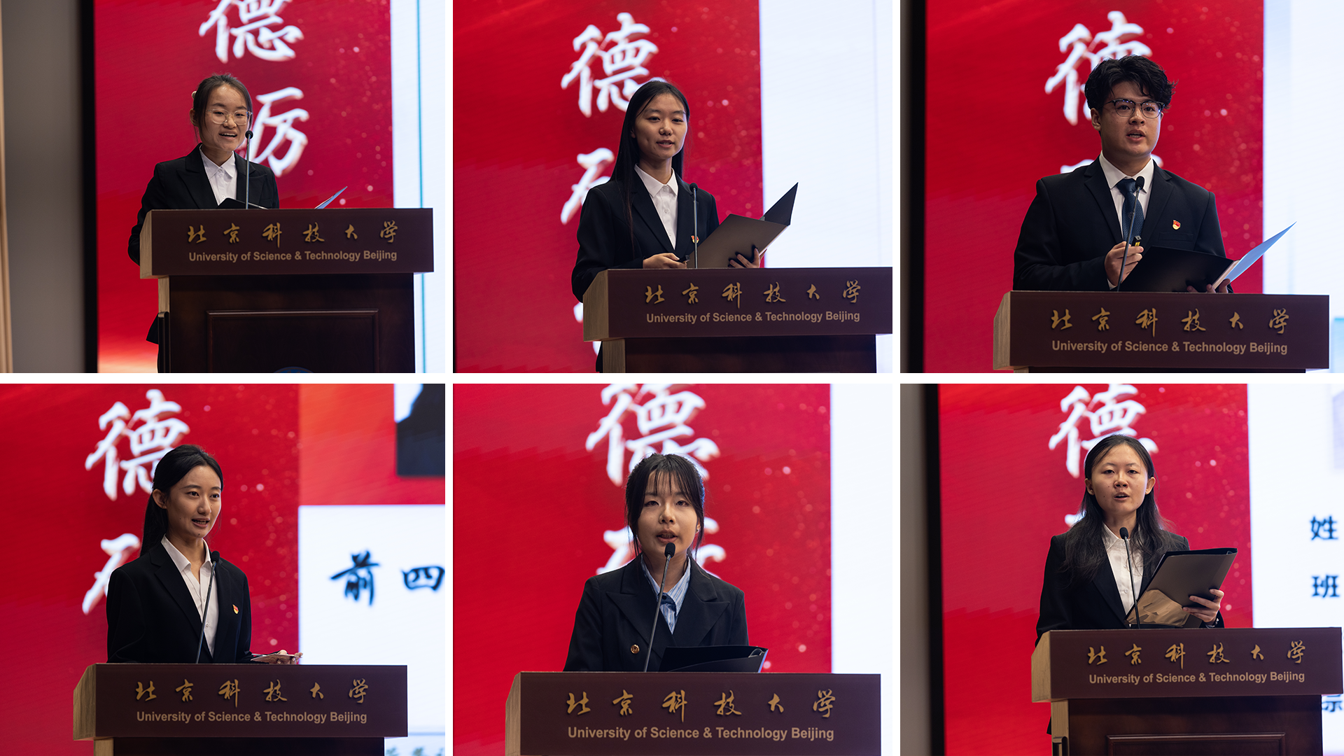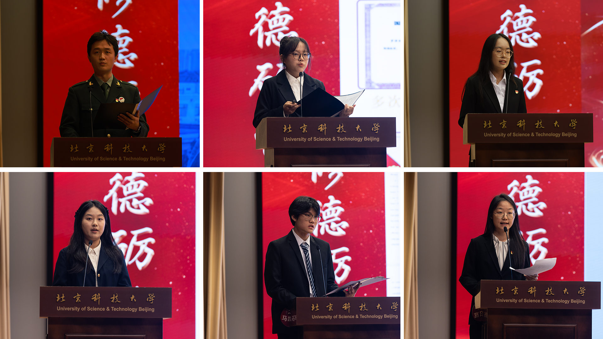 赵俊清脚踏实地深耕学业,凭借英语专长,参加青年使者赴美交流项目,将中国文化带出国门,彰显当代青年的文化自信;吴少兴结合自身微积分的优异成绩,分享了自己做好时间规划、模型化整理笔记和以赛促学的学习经验,为新生提供参考;徐晨宇培养了良好的自学能力,大学依然保持良好的自学习惯,在学业与竞赛中斩获佳绩,彰显新时代学子的进取风貌;王英铭讲述了自己合理使用AI,自学《C++程序设计》课程,并取得优异成绩的经历,体现了新时代青年善于探索创新的精神;杨雅婷在具有扎实的学业基础之外,在宣传工作上躬身力行,从军训团宣教组干事到班级宣传委员,她矢志不渝锻造钢筋铁骨,努力做好新时代北科青年;龙碧莹秉持初心,筑牢学业根基,在科研探索中深挖机理,怀揣热爱,在学工、实践、志愿等方面多点开花;张杏达着重培养自己的“专注力、自主力和向上力”,发挥自身学习优势,在“学霸帮帮忙”活动中帮助所负责的全部同学补考通过;刘志豪博观约取,厚积薄发,在学科竞赛中表现优异,同时他结合编导的爱好,参与学校多部微电影剧本制作和拍摄,展现全面发展的青春风采。