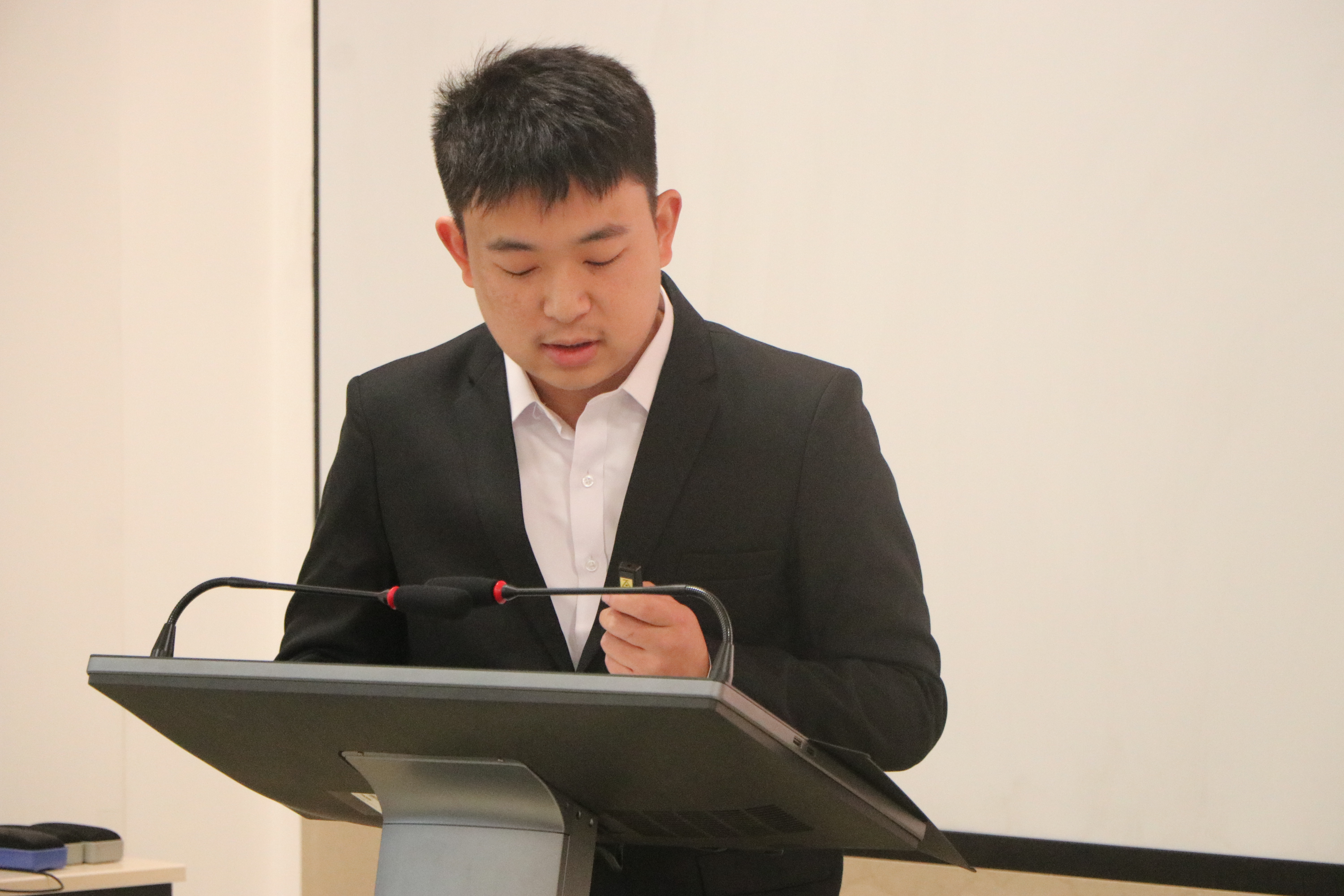 答辩结束后,杨志伟作总结讲话。他向答辩同学取得的成绩表示祝贺,并向全体同学提出三点希望:一是主动探索,用好身边的资源,积极利用学院提供的科研平台、导师资源及各类竞赛机会,在自主探索中拓宽视野;二是全面发展,锤炼过硬的综合素质,在专业学习深耕的同时,注重德智体美劳全面提升;三是发挥好带动作用,做优良学风的引领者,以榜样力量带动更多同学共同进步,营造“比学赶帮超”的浓厚氛围。