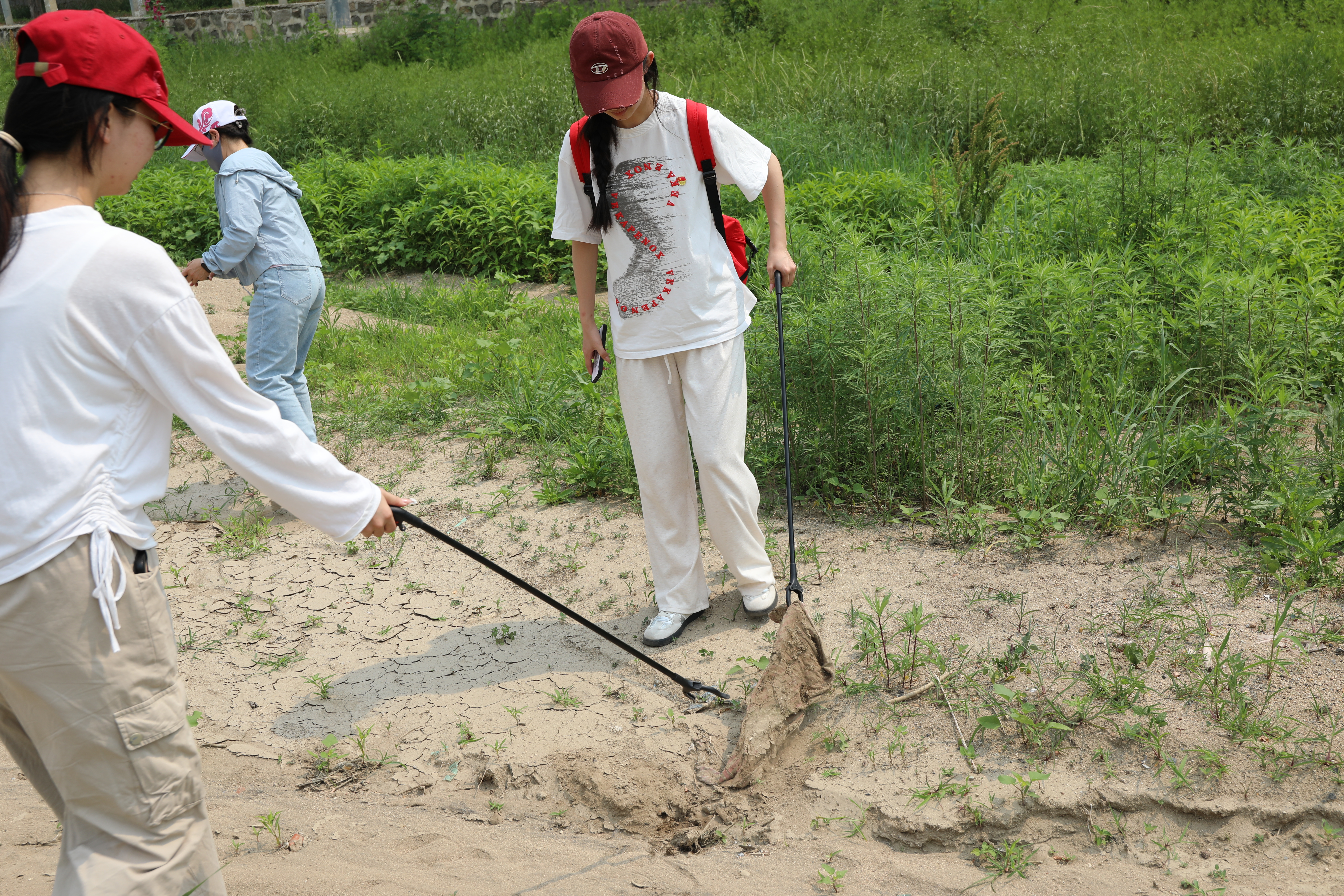 躬身清流护碧水,微光成炬显担当。 外展结束后,支部成员投身河道垃圾清理行动。他们手持网兜、夹子等工具,细致清理下庄村河道每一处角落。冯小乐同学表示,未来将秉持“微光成炬”的理念,从垃圾分类、节水节电等日常点滴做起,汇涓滴之力守护绿水青山。