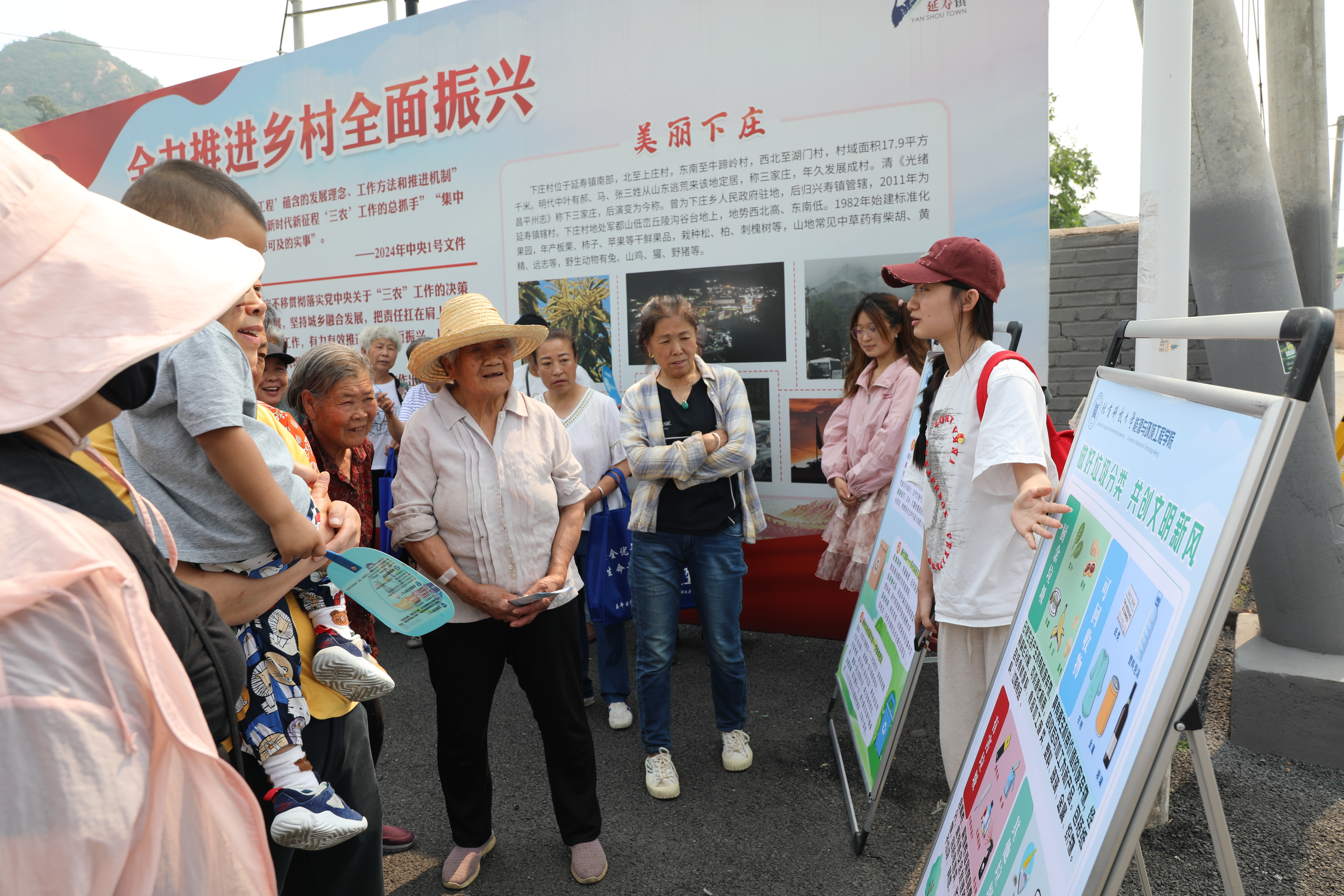 理论宣讲润心田,绿色理念植根基。 活动伊始,北科大“美丽中国”宣讲团成员王雅珅为村民带来“共赴十年之约,绘就绿色答卷”主题微宣讲。她以深入浅出的语言,强调人人皆是生态文明建设的“践行者”与“推动者”,并通过“一带一路”中可再生能源、节能环保等鲜活案例,展现中国绿色发展的卓越贡献。