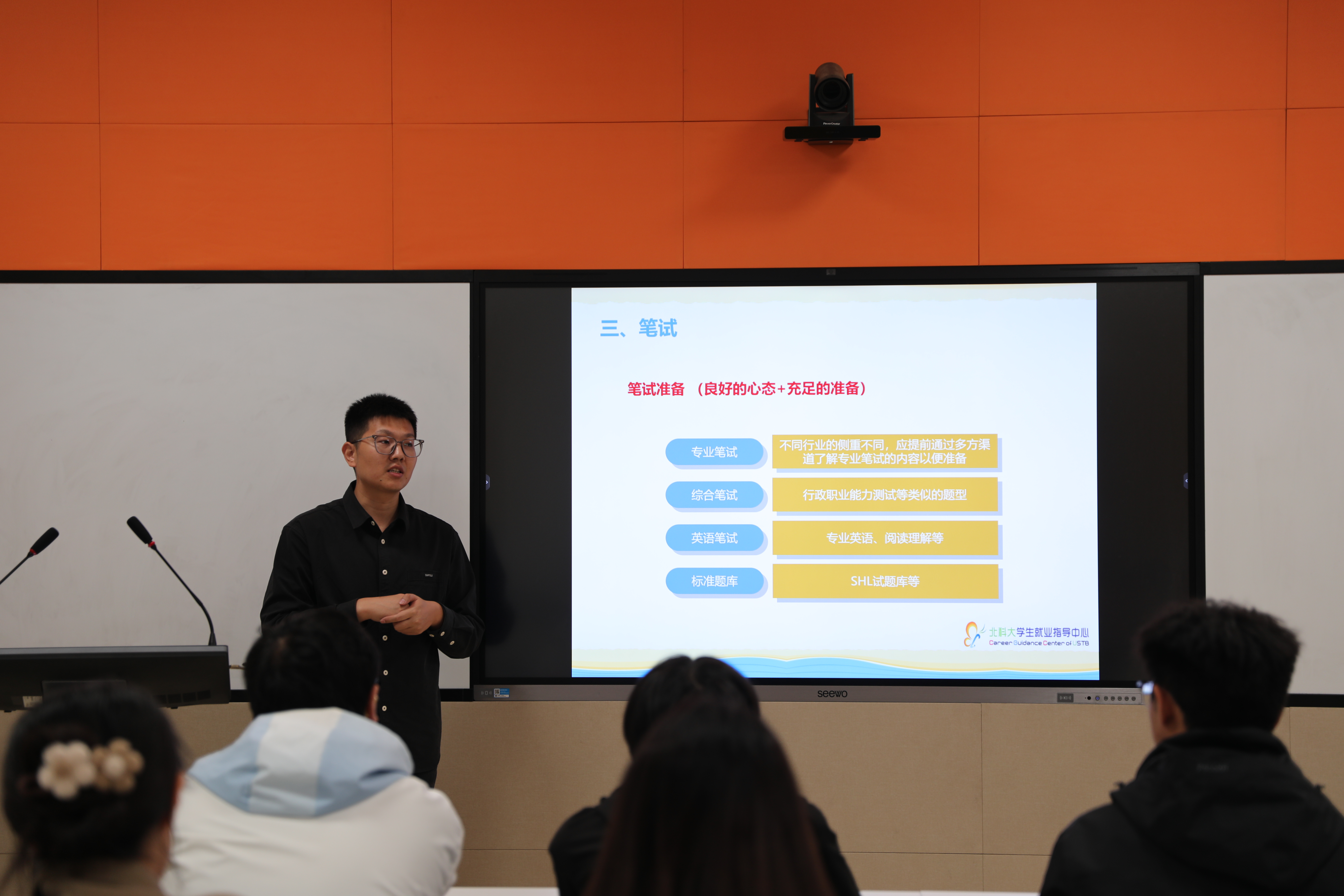 杨乾振老师指出,线下渠道是获取优质就业机会的重要途径,建议同学们重点关注本校及周边高校举办的校园双选会与专场招聘会,主动把握与用人单位面对面交流的机会。分享了“北京科技大学就业信息网”是获取权威招聘信息的核心平台,提醒学生充分利用这一官方渠道。