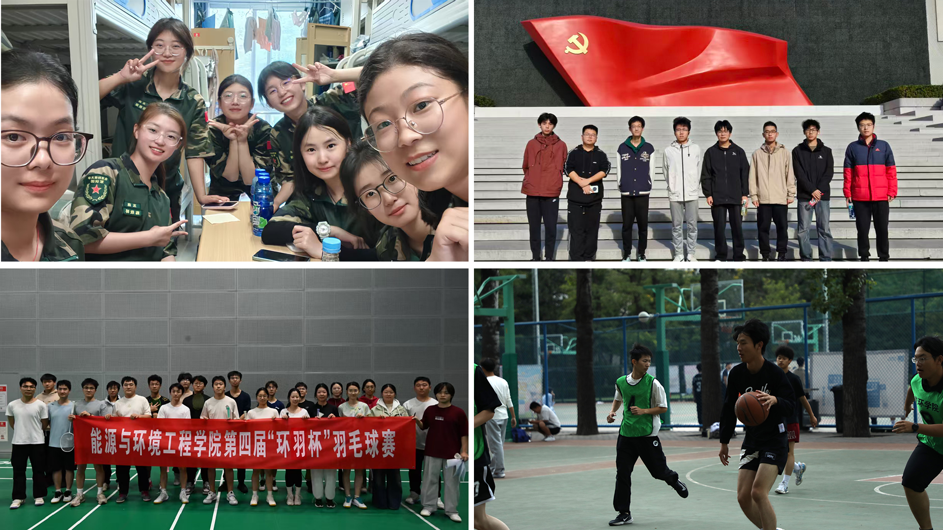 “活力青春”板块聚焦文体活动与集体建设,激发学生的创造力和青春活力。“相‘寓’能环・‘宿’说青春”宿舍文化节,推出“八个一”新生宿舍建设活动,通过建立宿舍公约、开展清洁扫除、组织红色研学、参与学习打卡、设计环保门牌、拍摄创意合影、举办团建活动、开展成果展示,增强宿舍凝聚力,让每间宿舍都成为青春成长的温暖港湾。第四届“环羽杯”羽毛球赛,设置男单、女单、男女混合双打项目,引导学生在运动中锤炼品德意志、增强身体素质,进一步繁荣校园体育文化。“迎新杯”新生篮球赛,点燃青春热血,各班级代表队在赛场上奋勇拼搏,凝聚班级向心力,展现能环学子蓬勃向上的精神风貌。