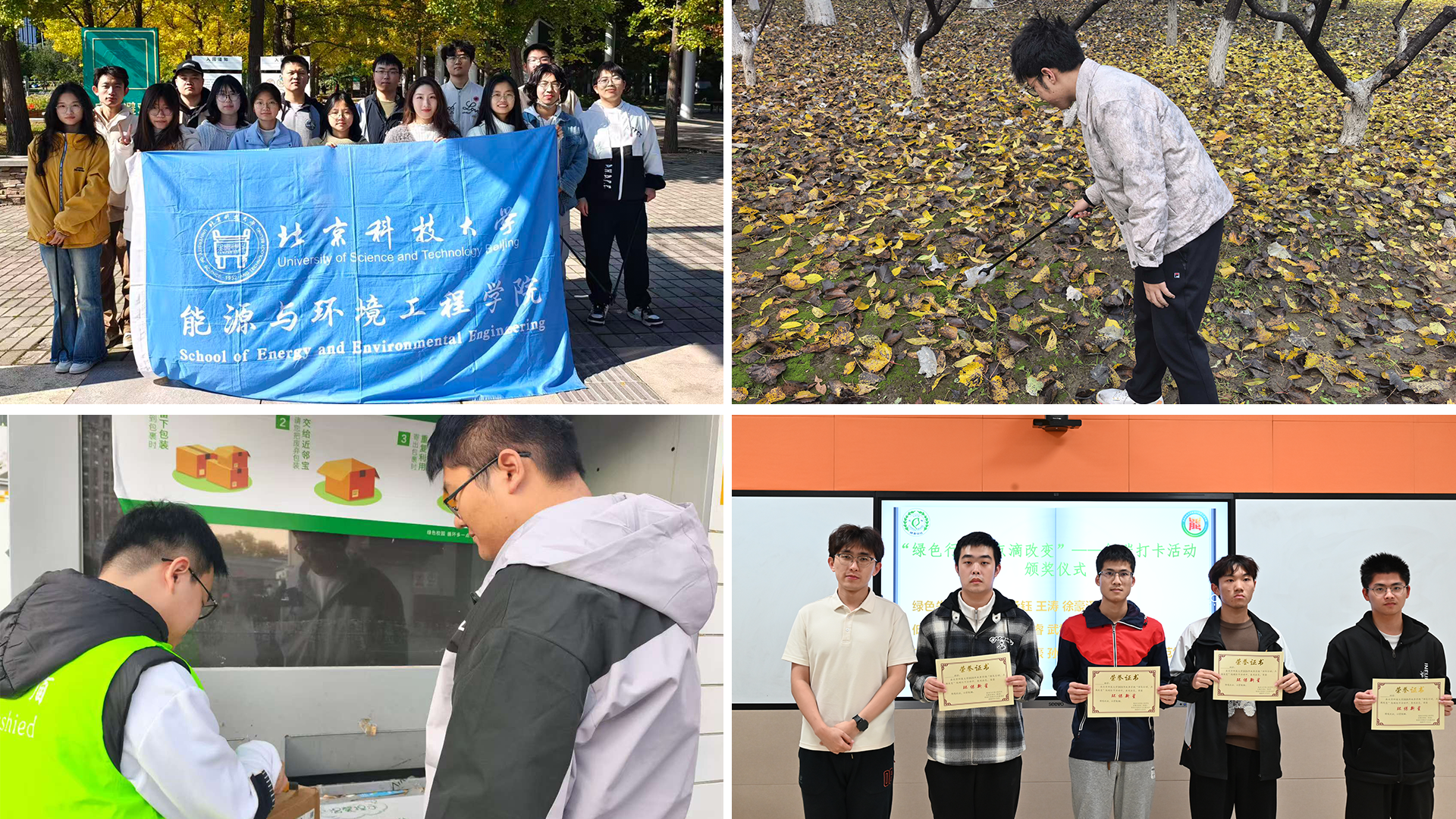 “奉献青春”板块聚焦环保公益实践,引导学生用点滴行动诠释青年担当。“清新捡跑,环保同行”垃圾捡跑活动,巧妙融合运动与环保,引导学生们用弯腰俯身的坚持,为城市环境减负,传递绿色生活态度。“汇聚百盒・传递绿色”快递盒回收活动,让废弃物焕发新生,在资源循环中培养学生的节约意识与志愿服务精神。“绿色行动,点滴改变”线上低碳打卡活动,以为期两周的特色打卡行动吸引近百名学生参与,累计有效打卡近2000次,引导师生通过绿色出行、光盘行动、废物利用等多元形式践行低碳理念。