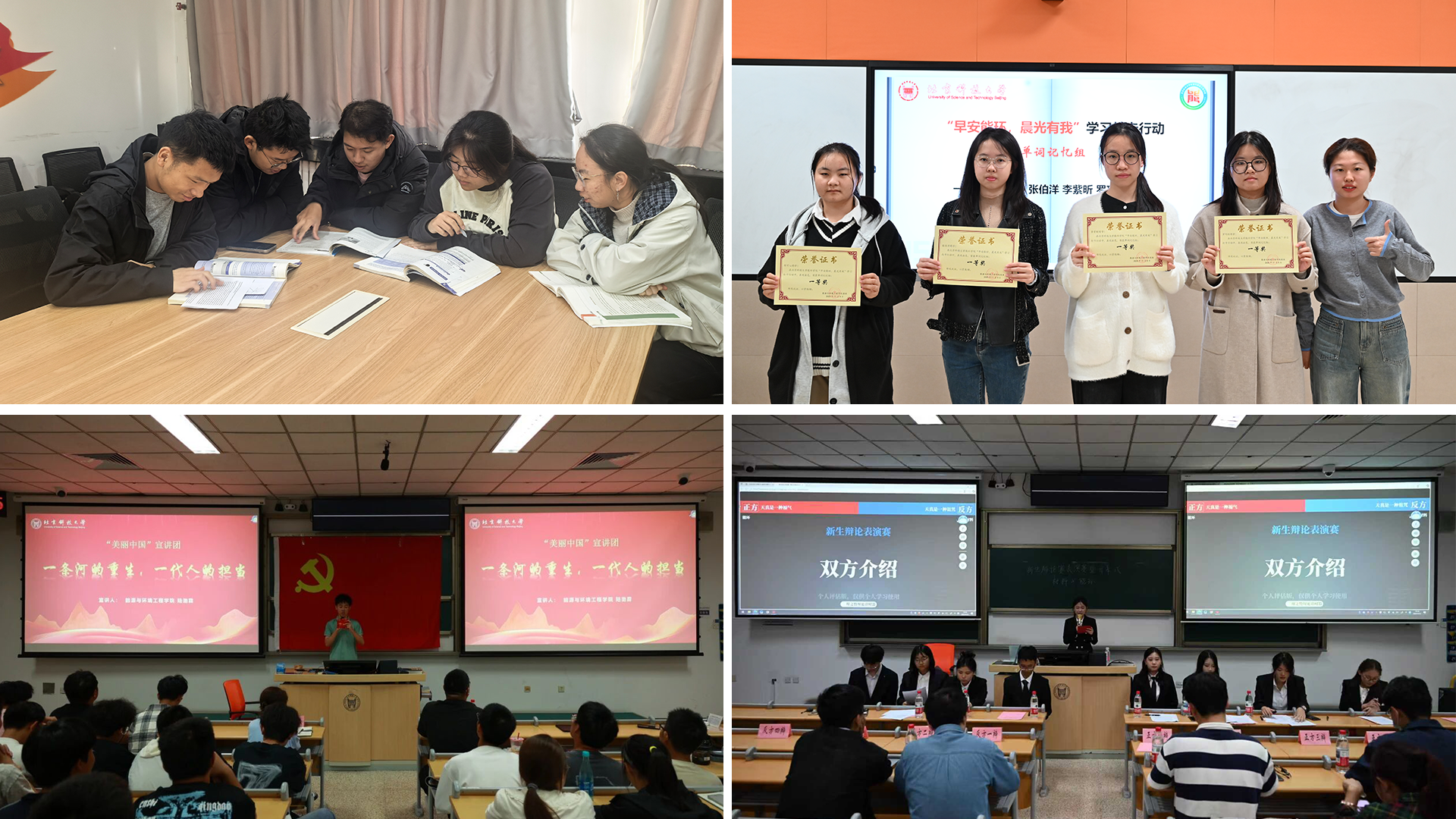 “奋进青春”板块围绕学风建设与思想提升,推出系列沉浸式学习与思辨活动,提升学生综合素质和学习能力。“早安能环,晨光有我”学习打卡行动,通过设置新生晨起、英语学习、每日一题、学习笔记四大模块,引导学生早起读书、每日刷题、积累单词,在“比学赶帮超”氛围中培养学生的自律性和毅力,为营造良好学风做出积极贡献。“美丽中国”宣讲团专题宣讲会,依托学院专业优势,以青年之声传播生态保护理念,让生态文明思想“声”入人心,引导学生以专业之力守护绿水青山。“辨以论道,智启新程”新生辩论赛,以清晰的逻辑与敏捷的思维为新生带来思维盛宴,帮助新生了解辩论规则与技巧,养成辩证思考、理性表达的良好习惯。