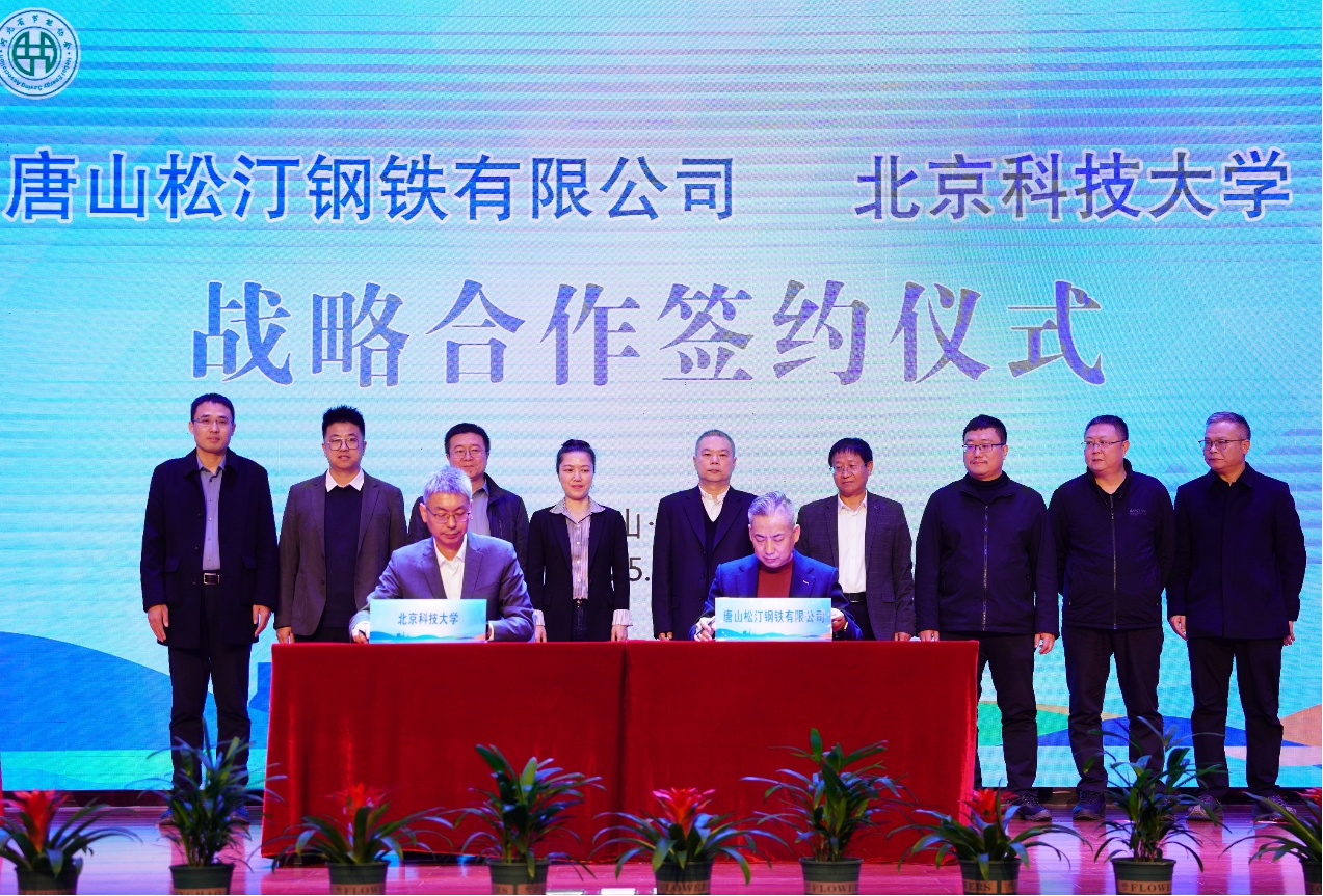在与会嘉宾的共同见证下,学校党委常委副校长焦树强与唐山松汀钢铁有限公司总经理李志强共同签署《战略合作协议》。双方将在唐山松汀钢铁有限公司共建"绿色低碳钢铁技术研发与应用基地",聚焦钢铁全流程节能降碳、冶炼环节低碳技术、碳足迹管理、绿色标准制定等八大方向开展联合研发与产业化应用。此次合作是学校深化产学研融合、服务行业绿色转型的又一重要举措。