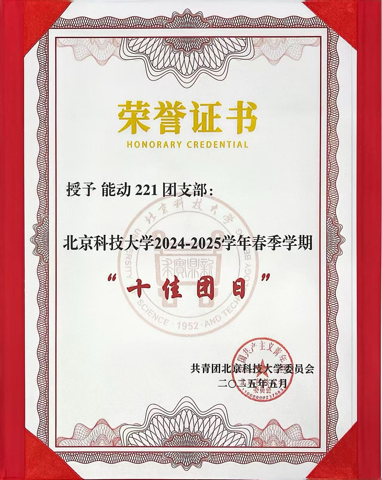 近日,能源与环境工程学院能动221团支部 以“以青春炬火,燃时代之光”为主题 通过模拟红色实践、宣扬奋斗青春、牢记青春誓言 彰显新时代青年的蓬勃朝气获评北京科技大学2024-2025学年春季学期“十佳团日”!